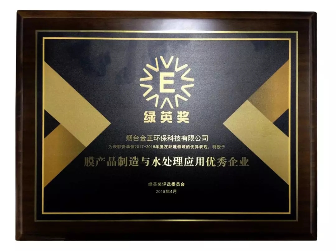 煙臺金正環(huán)保科技有限公司于2018年4月20日,榮獲2017-2018年度“綠英獎-膜產(chǎn)品制造與水處理應(yīng)用優(yōu)秀企業(yè)榮譽”稱號。