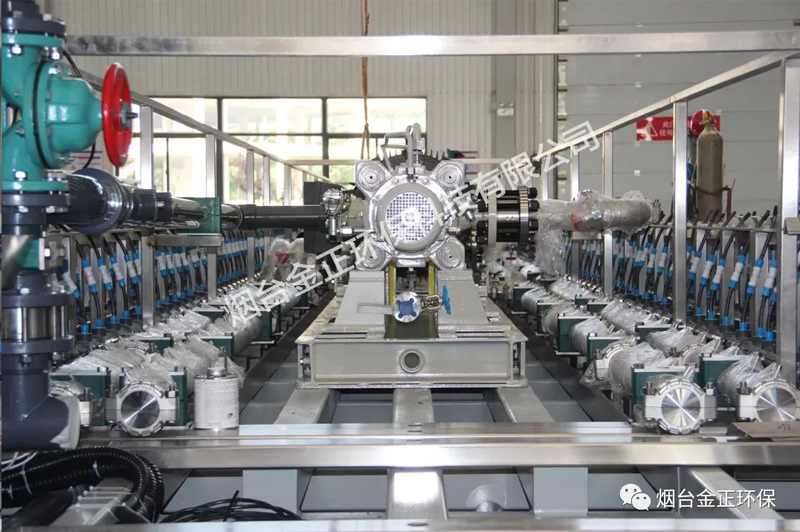 7套DTRO設(shè)備近2000支膜組件組成,全部由金正環(huán)保全自動化生產(chǎn)線組裝完成,產(chǎn)品合格率>99.99%,而且每支膜組件都有自己的“身份證”,在工程運用中可實現(xiàn)溯源。