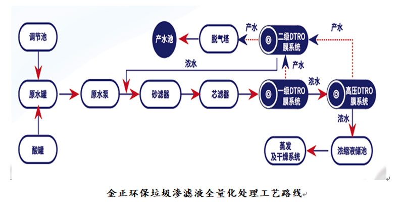 主要工藝:預處理+兩級碟管式反滲透(DTRO)+離子交換