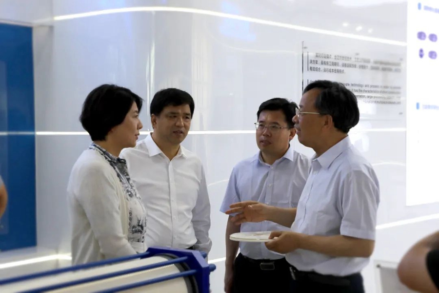 當日下午,萬華集團董事長廖增太、萊山區委書記羅建一行來到我司走訪交流。煙臺金正環保董事長張卓陪同參觀。雙方圍繞如何深化合作實現共贏進行了交流。