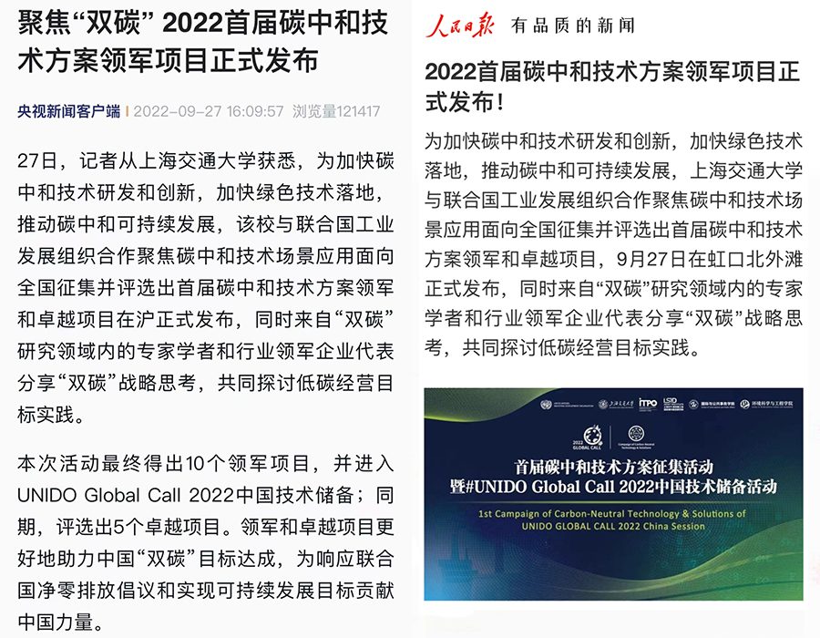 為加快碳中和技術研發和創新,加快綠色技術落地,推動碳中和可持續發展,9月27日2022首屆碳中和技術方案獲獎項目正式發布。此次活動由上海交通大學與聯合國工業發展組織合作,在全國共評選出5個卓越項目獎。該活動已分別于2020年和2021年在意大利和德國舉辦,在創新技術的可持續應用方面全球影響力巨大。