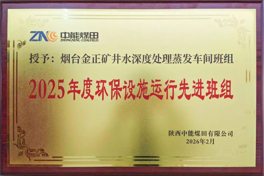 近日,煙臺金正環(huán)保“脫穩(wěn)耦合平板膜”創(chuàng)新工藝的首個規(guī)模化應(yīng)用——陜西中能煤田袁大灘煤礦項目再傳捷報,“煙臺金正礦井水深度處理蒸發(fā)車間班組”連續(xù)第二年被陜西中能煤田有限公司授予“2025年度環(huán)保設(shè)施運行先進班組”榮譽稱號。