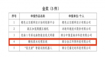 祝賀!煙臺金正環保酸性廢水處理系統榮獲金獎!